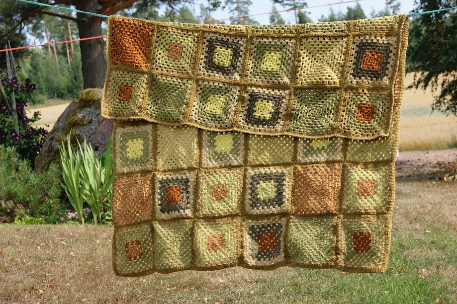 Tietyst kuva taas valehtelloo, mut kauhavalainen tul ihana keltaseks, valkiat jukolanpojat tul aika oranssii vivahtaviks ja sit tuos reunas on pien nöttönen vaalianpunast jukolanpoikaa, sitä ol jäänt jostai sukan tekeleest, ni aattelin taas kokkeilla, mukava rusehtava sävy.